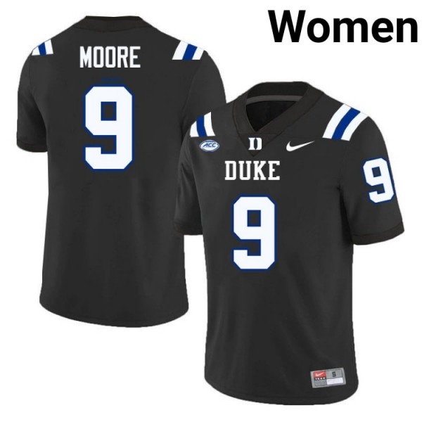 Women Jaquez Moore Duke Blue Devils University #9 Black Football Jersey 52512666