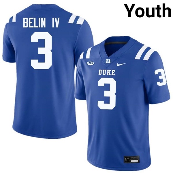 Youth Henry Belin IV Blue Devils University #3 Royal Football Jersey 81671471